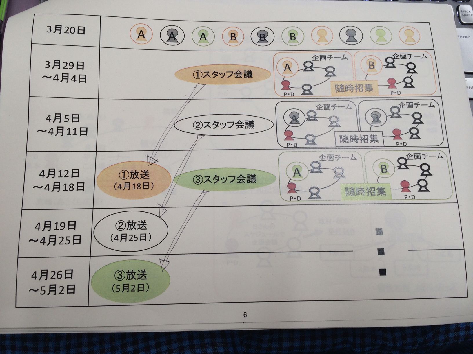 2週間後の放送に関する企画会議をおこなって行くペース