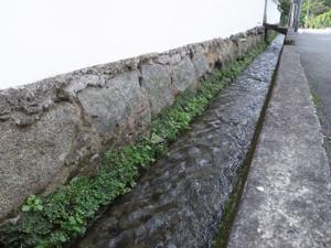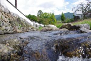 さらに窯の裏手にある、採取してきた土を細かく砕く「唐臼」も見学させてもらいました。そこには小川の水流を利用した大きな唐臼が・・・。本当に水が透き通って綺麗です。