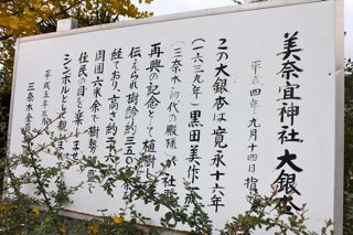 次は、美奈宜神社です。入り口では、一成公が植えた銀杏の大樹が出迎えてくれます。